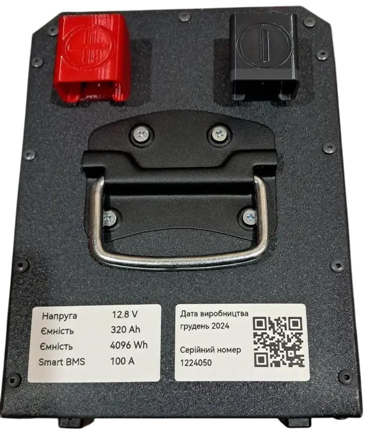 Цей акумулятор є потужним літій-залізо-фосфатним (LiFePO4) джерелом енергії від українського виробника Lighthouse, на яке надається гарантія 60 місяців. Це акумулятор глибокого циклу з розширеним ресурсом 8000 циклів заряду, призначений для тривалої експлуатації. Номінальна напруга складає 12.8 В, а висока ємність — 320 А·год (4096 Вт·год). Пристрій має міцний металевий корпус сірого кольору. Він підтримує широкий діапазон робочих температур: від -20°C до +60°C. Щодо робочих струмів, акумулятор може приймати максимальний струм заряду 100 А, а номінальний струм розряду також становить 100 А, з можливістю пікового розряду до 200 А. Він оснащений цифровим дисплеєм та функцією Bluetooth для зручного моніторингу. Габаритні розміри становлять: 355 мм (довжина) × 185 мм (ширина) × 250 мм (висота), а вага — 25 кг. 24500 22500